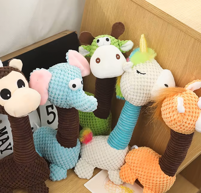 Juguetes Masticables para Gatos y Perros de Cuello Largo: Dale a tu mascota horas de diversión con estos adorables peluches. Disponibles en forma de elefante, jirafa, unicornio y mono, cada uno está diseñado con un cuello largo y flexible que invita a morder y jugar. Son ideales para satisfacer las necesidades de masticación de tu mascota, mientras les proporcionas un juguete suave pero duradero. Perfectos para gatos y perros, estos peluches no solo son divertidos, sino que también fomentan el ejercicio y el entretenimiento. ¡Elige el favorito de tu amigo peludo y deja que disfrute al máximo!
