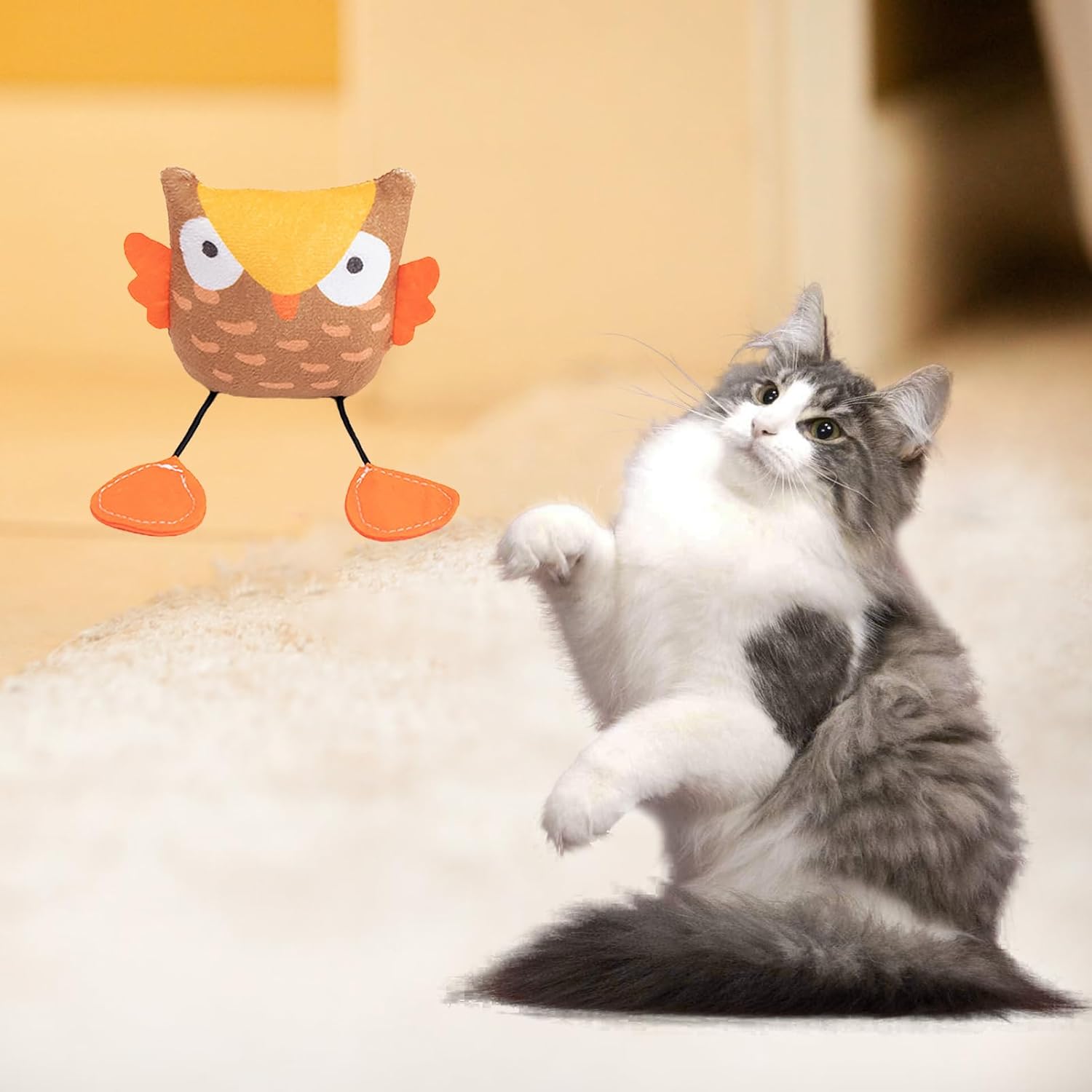 Peluche en forma de búho, perfecto para el juego y entretenimiento de tu gato. Suave, ligero y fácil de atrapar, estimula su instinto cazador y lo mantiene activo. ¡Diversión asegurada para tu felino! 🐱🦉✨